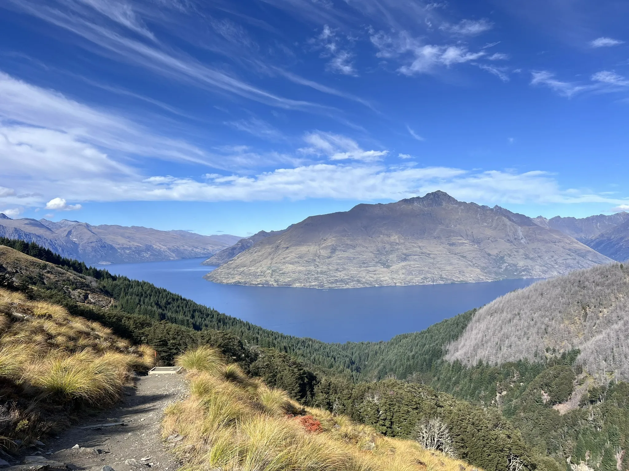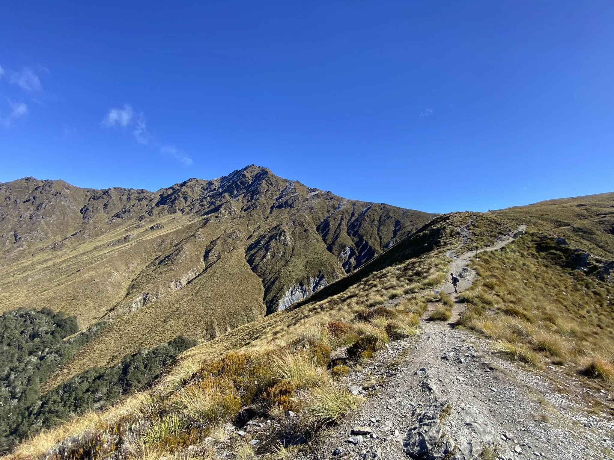 Once you’re on the main trail, expect the landscape to open up dramatically. Rolling tussock hills give way to alpine ridgelines, with sweeping views of Lake Wakatipu, the Remarkables, and—on a clear day—Mount Aspiring in the distance.